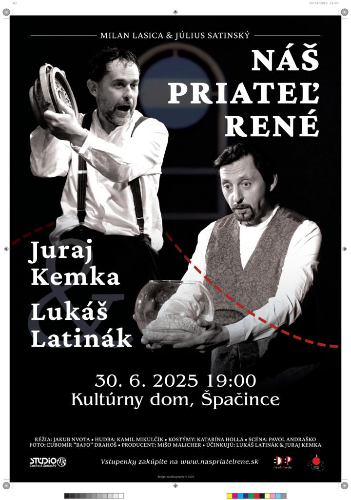 Pozývame Vás na divadelné predstavenie Náš priateľ René, ktoré sa uskutoční dňa 30.06.2025 o 19:00 hod. v Kultúrnom dome v Špačinciach.