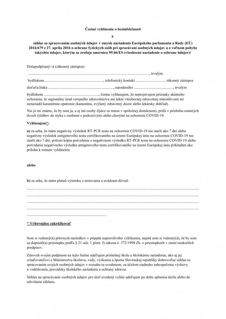 Dôležitý oznam - MŠ Zvončín 8.2.2021