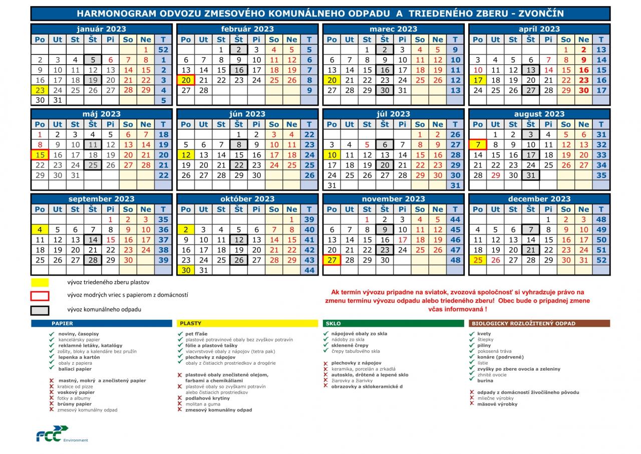 Harmonogram vývozu komunálneho odpadu na r. 2023