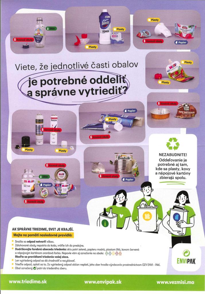 "Jednotlivé časti obalov je potrebné pred vyhodením oddeliť a správne vytriediť."