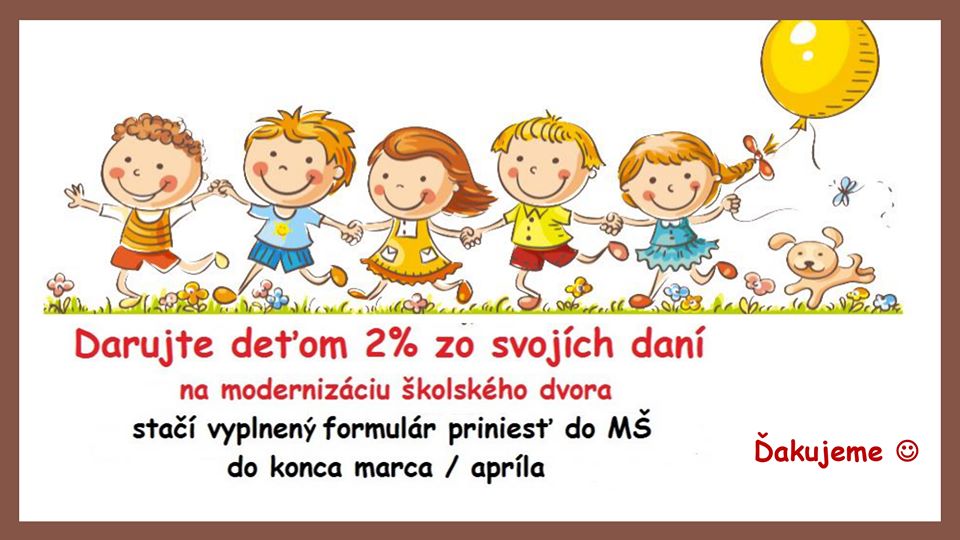 Oznam - 2% daní pre deti z našej MŠ vo Zvončíne