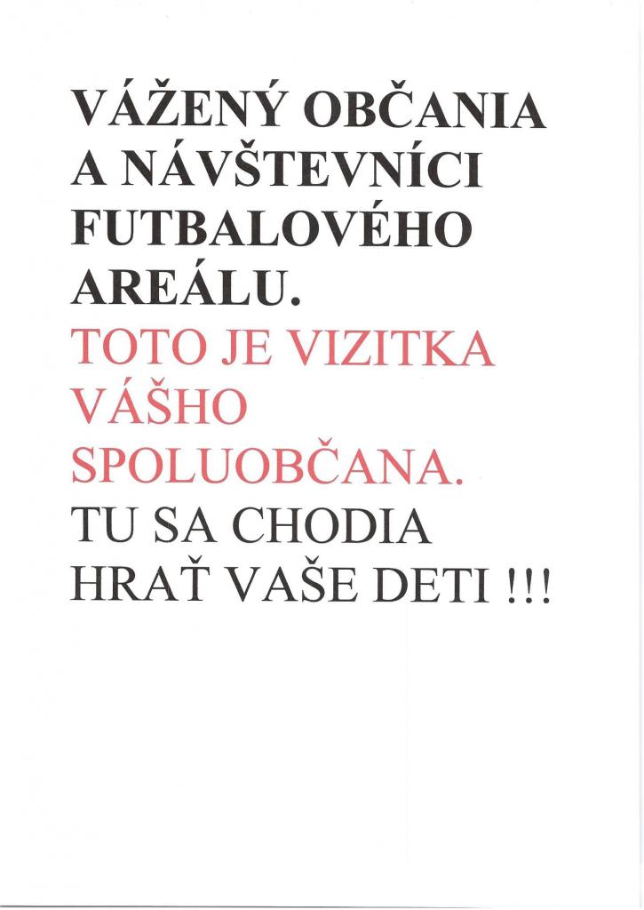 Vážení občania a návštevníci futbalového areálu.