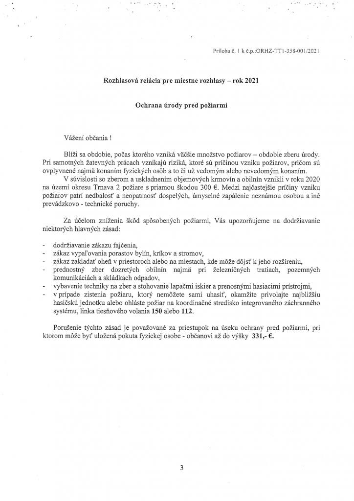 Oznámenie pre občanov - opatrenia na ochranu úrody pred požiarmi
