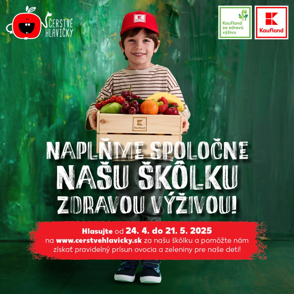 Vďaka Vášmu dennému hlasovaniu od dnes 24.4.2025 do 21.5.2025 by sme mohli vyhrať celý školský rok prísun ovocia a zeleniny pre naše deti do MŠ. Pred dvomi rokmi sa nám to aj vďaka Vám podarilo.