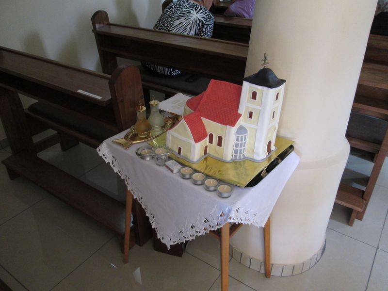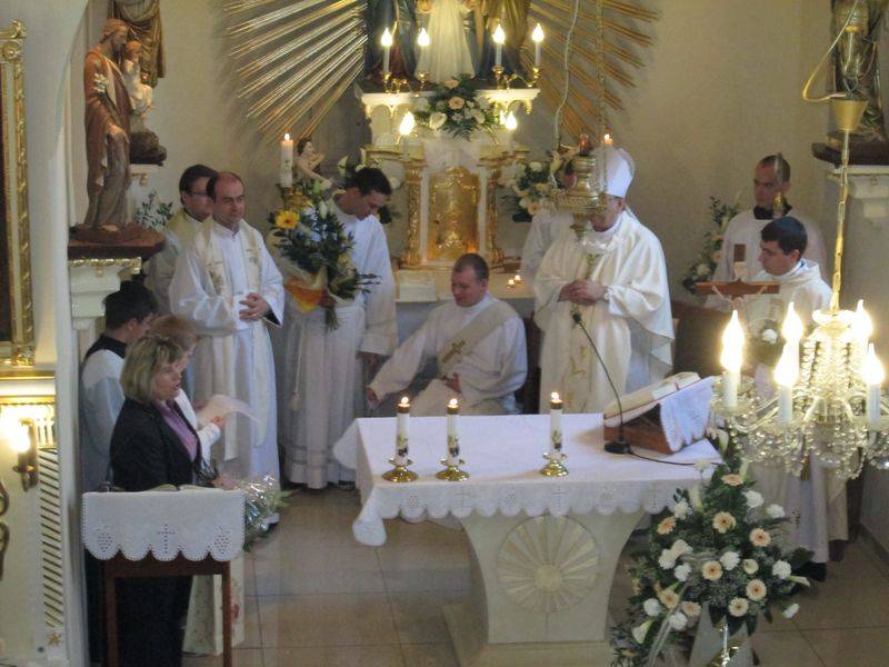 V nedeľu, 28.4.2013, sa v našom malom kostolíku konala významná sv. omša, pri ktorej prebehol akt jeho vysviacky po ukončení rekonštrukcie. Sv. omšu celebroval J.E. Ján Orosch, apoštolský administrátor a trnavský pomocný biskup. Vysvätený bol nielen kostol, ale aj prekrásny nový oltár. Všetci veriaci boli po omši pozvaný na slávnostný obed, ktorý sa konal v KD. O chutný obed a fantastické slané i sladké dobroty sa postarali naše šikovné ženy.