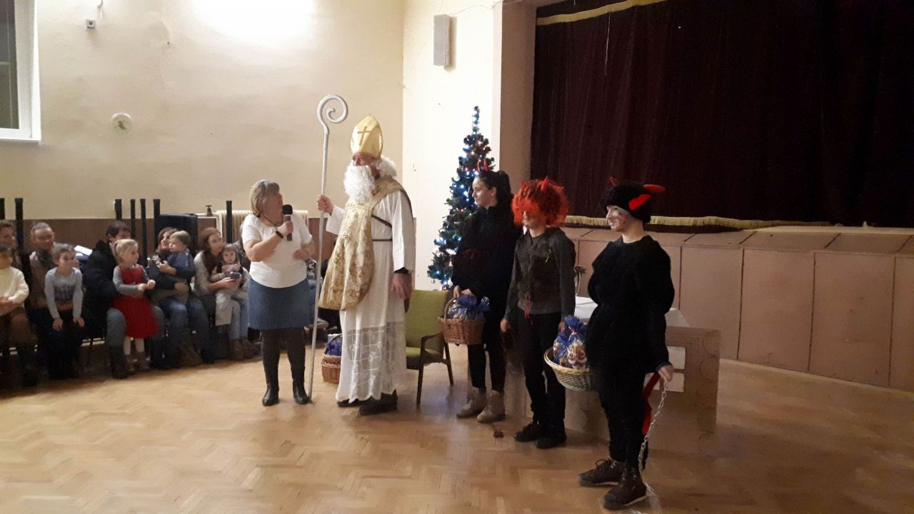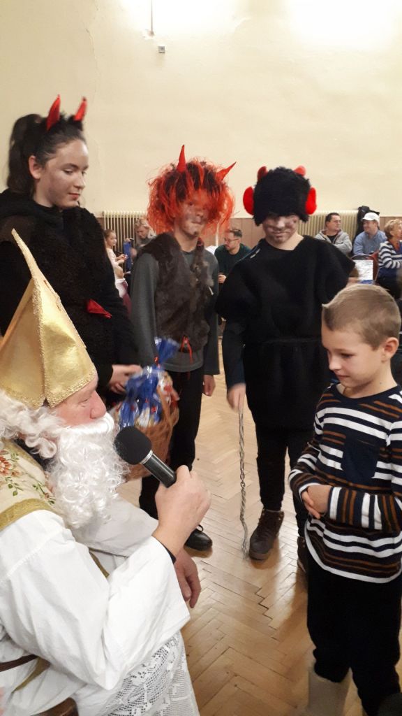 Podvečer, 5.12.2018, sa na svojej ceste zastavil u nás v KD Sv. Mikuláš aj s pomocníkmi – čertíkmi a anjelmi. Rozsvietil obecný vianočný stromček, vypočul si veľa pesničiek a básničiek od detí, ktoré potom obdaroval sladkosťami. Plná sála rodičov, starých rodičov a detí zažila čaro prichádzajúcich Vianoc pri vianočnom punči.